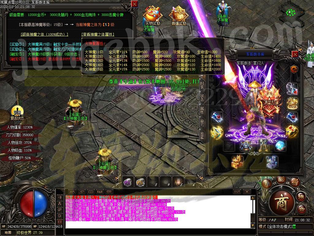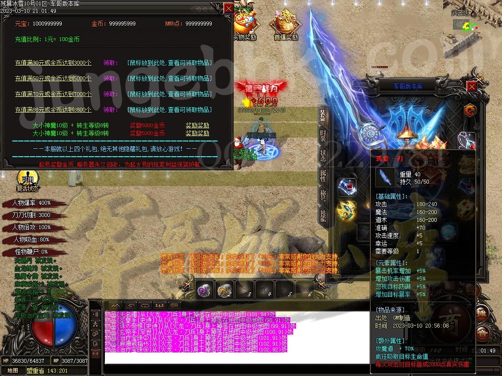 满礼包赠送 大小神魔,140等级,魔法盾,8转,2W切割值等等珍贵物品