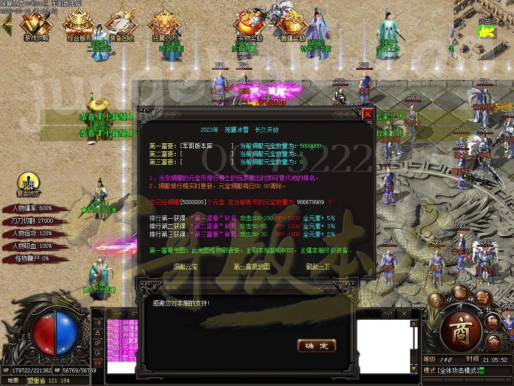 土豪档 总切割=98000切割值   打怪快 增加N倍血量 专属地图