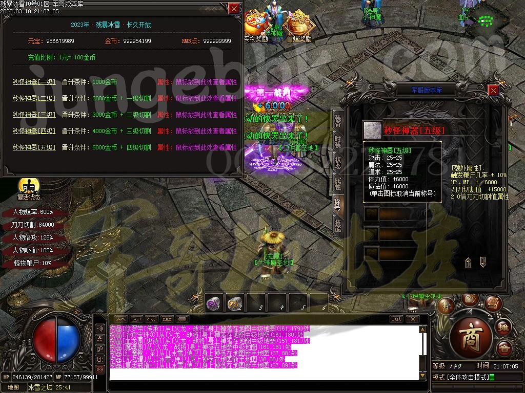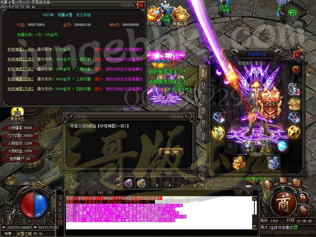 金币充值比例 1 :10   版本为正常开区端有问题联系QQ 616102345  处理