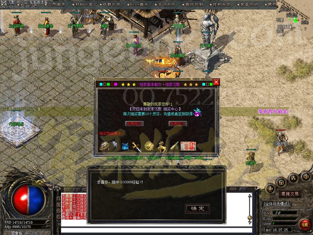 【游戏介绍】:本服装备全爆,惊喜不断!装备长久!任何装备材料都可以卖!散人好混!
