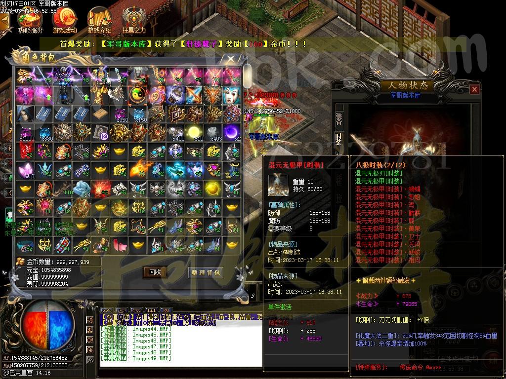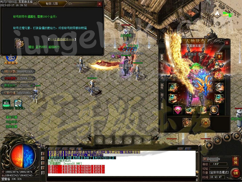 金币充值比例 1 :10   版本为正常开区端有问题联系QQ 616102345  处理
