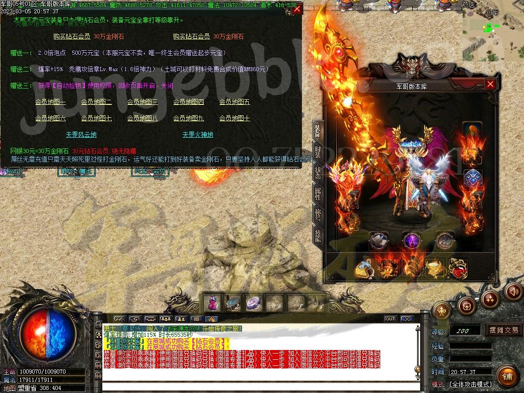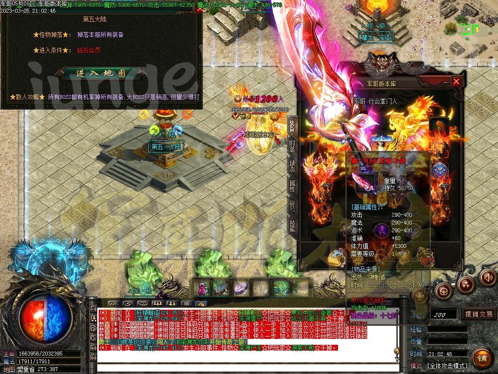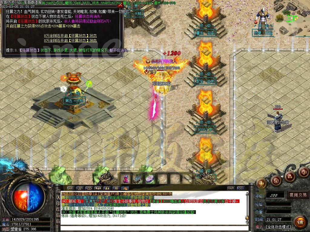 5、牛逼人生:会员+召唤魔王技能(无敌宝宝)+10转(1.15倍神力地图爆率高)到处乱砍BOSS!