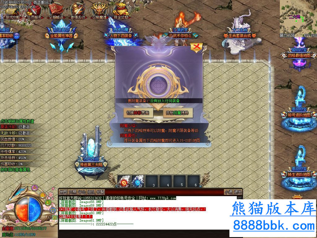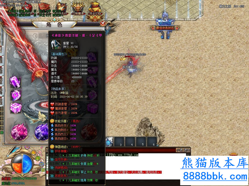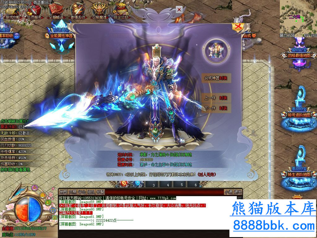 满时装合成需要:100W点券。人物死亡几率触发原地复活并满血,攻击时几率触发使对手进入失明状态。终极时装防止盾牌的卸装备BUFF。终极时装打怪附带半月冰冻效果。几率切割怪物血量1000W