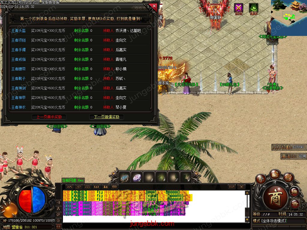 【攻沙奖励】:三天合区后统一拿沙,人气火爆,奖励丰厚!非常值得您的期待!