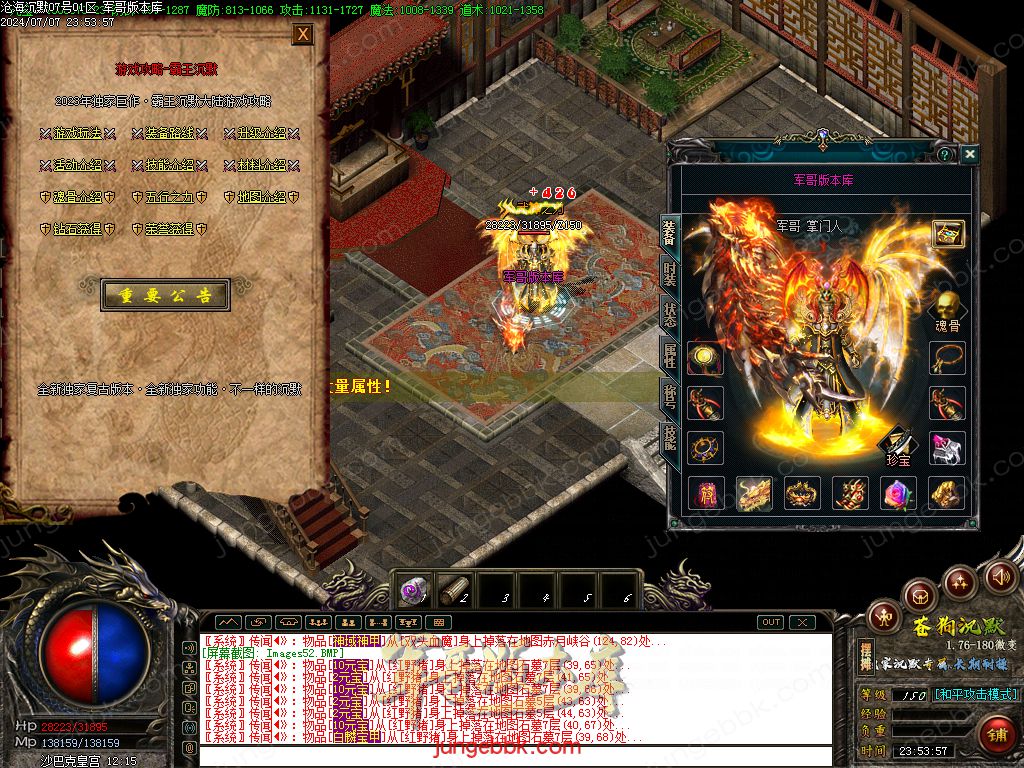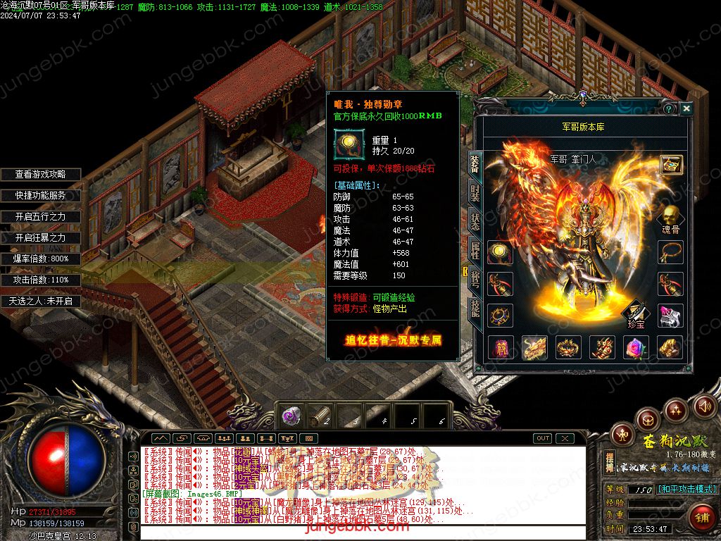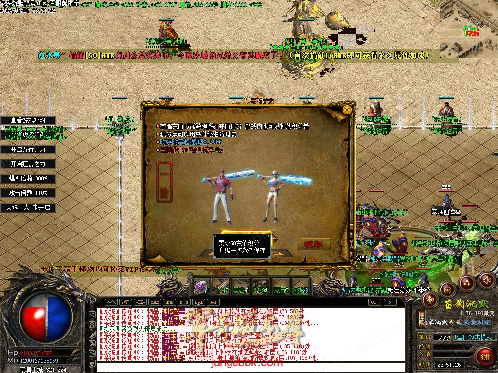 金币充值比例 1 :10   版本为正常开区端有问题联系QQ 616102345  处理