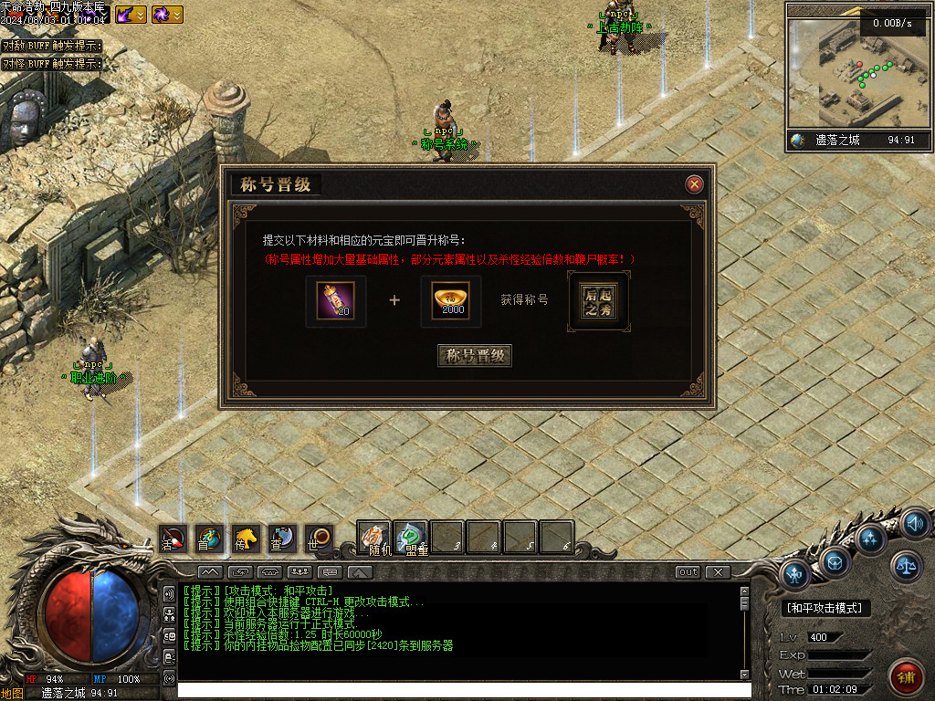 NPC:    镇魔将军  (魔龙城129 149)   (获得称号:荡魔先锋)     吸魂石 + 染血军徽