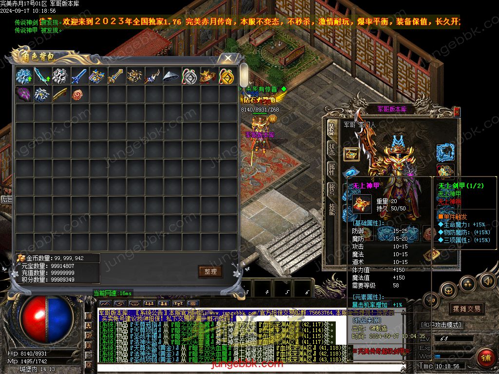 【游戏装备】:赤月-黄金-完美-史诗-传说-无上-罕世!!看脸时代!一切靠打!