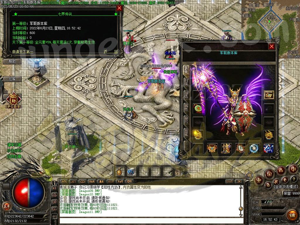 一:七界人界篇: 坐标在下面 杂货店老板可以接到金灵珠任务(怪物可直接掉落,详情查看爆率文件),商城买炼金术,和每日任务(必做,可以得到道德值,学护体神盾必用),百晓生用来转身。了解完NPC,新手村左上角出村,先去僵尸洞打点初级技能,刚进洞的附近有传送阵,好好找找,记录传送阵可以传送还可以得声望。BOSS爆女娲石头(开地图专用),人界普通BoSS出特戒,沃玛教主出传送(可以用一辈子的东西),触龙神出麻痹,祖马教主出复活。当你升到49级的时候,可以去封魔殿打人界镇界:嬴政。嬴政出所有特戒加至宝头盔斗笠(头盔是防爆,斗笠是探测)。杀了嬴政,石头上交够了,49级了就可以渡劫了(40点魔御就够了)。人界有3个特色副本:青城派(安全区),崆峒派(新手村右上角水帘洞前面)昆仑派(沃玛森林最上面的空地)。3个副本各有一个BoSS,青城是战士型BoSS,崆峒是法师型,昆仑是道士型。青城派打法,道士隐身进去随机找到BoSS,引到副本上方没小怪的地方卡位打,崆峒派道士隐身进去找到BoSS上个毒就飞走,副本装备属性超高,打到檀木钥匙和武林大会门票要留着,灵界用的,其中镯子是魔血,头盔是1.2倍经验,武器衣服属性超高。衣服带回血。