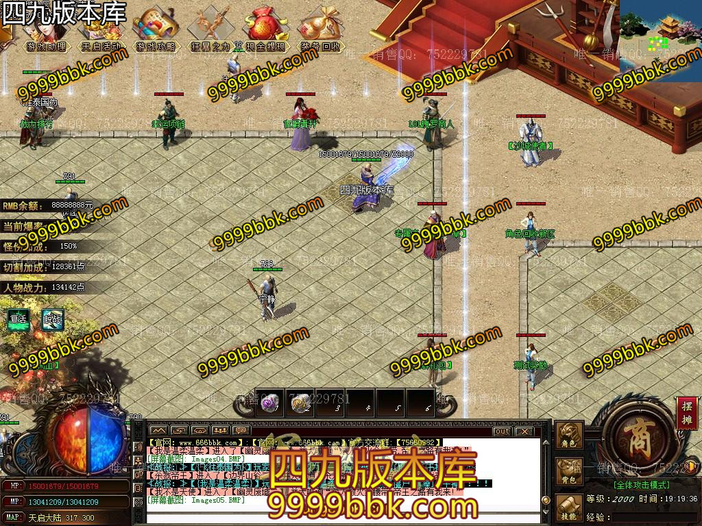 充值四 : 2500灵符+60rmb满赞助+沙城捐献+狂暴(自动拾取)+魔法盾+擒龙手+十步一杀+半月+满官爵+满鞭尸+无敌buff+满切割+不定等级连爆符