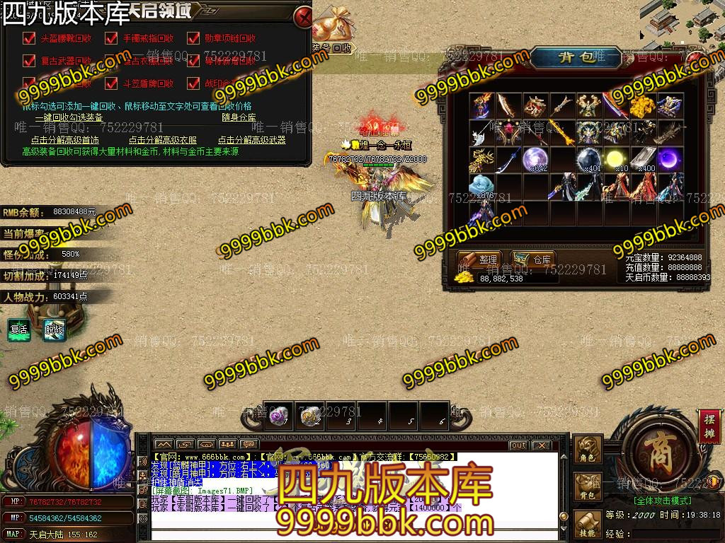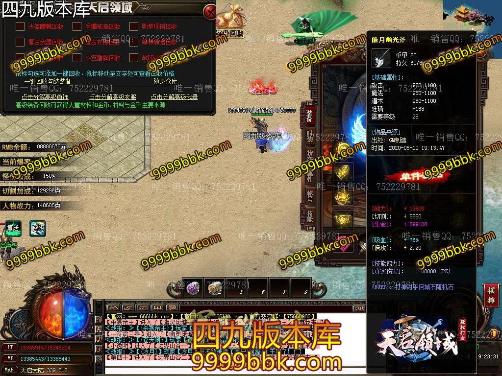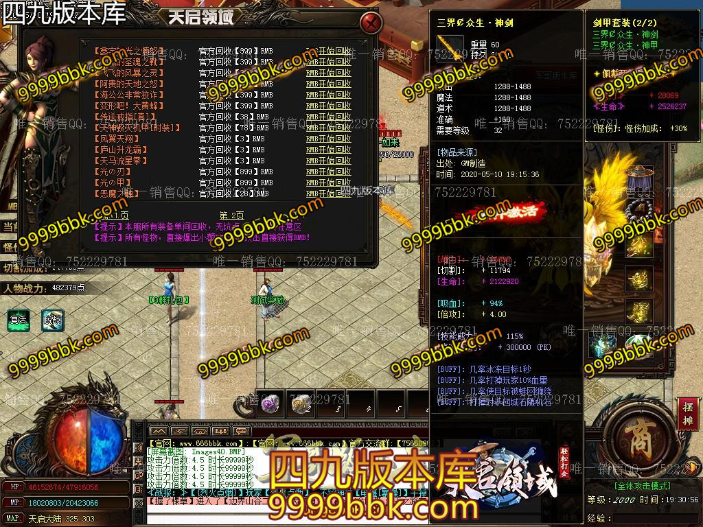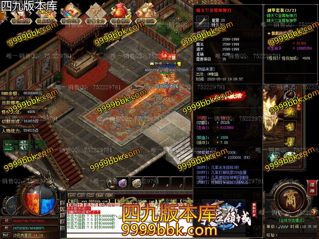 3.元宝*800万 + 刀刀切割[四倍] + 二级鞭尸符 + 破馆珍剑 + 藏魂剑甲[时装]