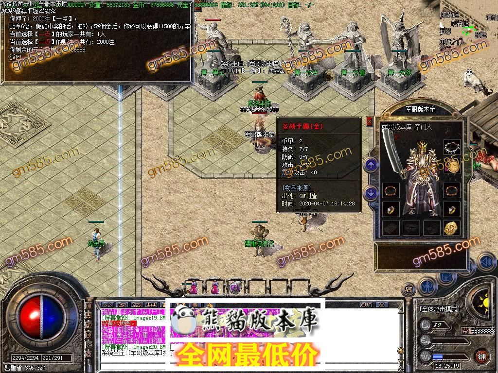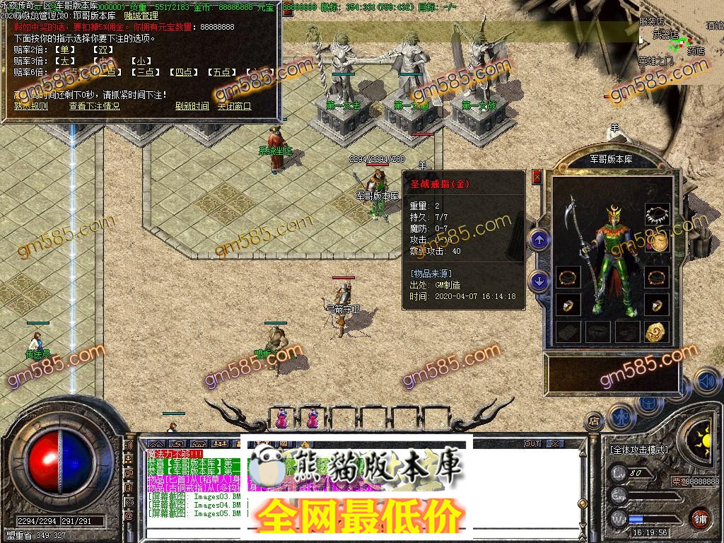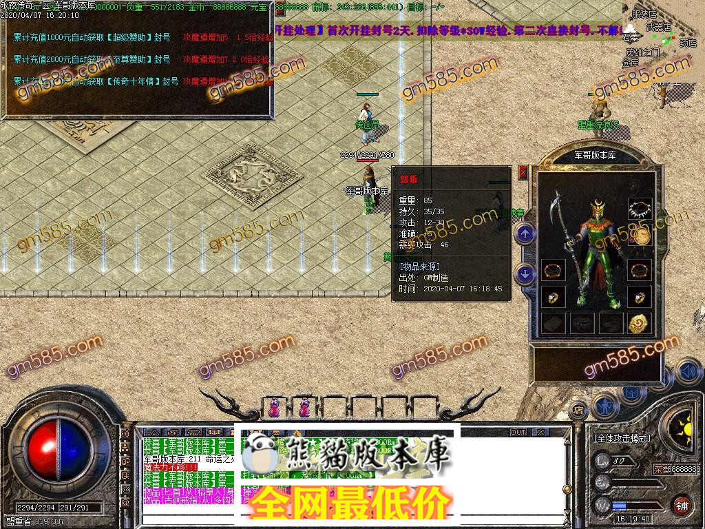 本服特色:1.移动背包系统,背包可无限扩展,解决背包空间不足的烦恼,移动背包可以扩展,不占负重,不会爆出,搬砖必备。 2.本服祖玛以上装备均有隐藏属性,具体游戏中体验。 3.祖玛以上装备均永久回收,具体游戏中查看。 ============================================================