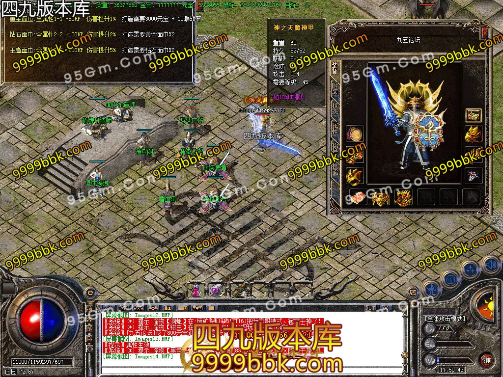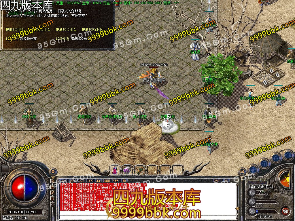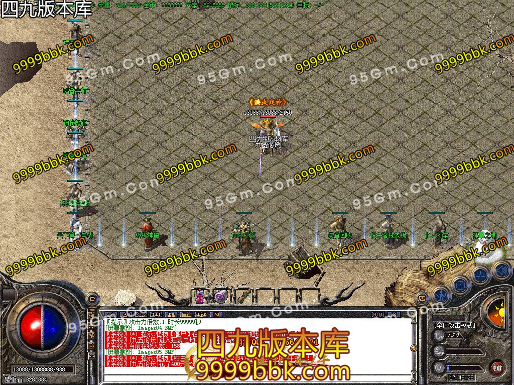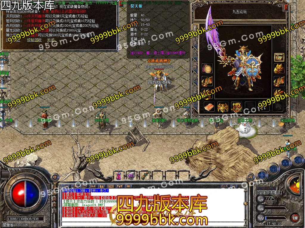 充值比例1:100元宝 装备爆率高.回收比例高.不充钱照样牛逼