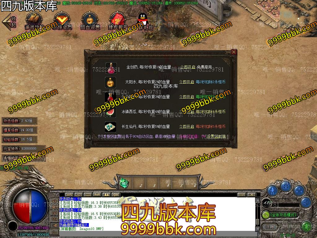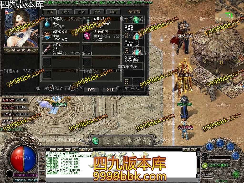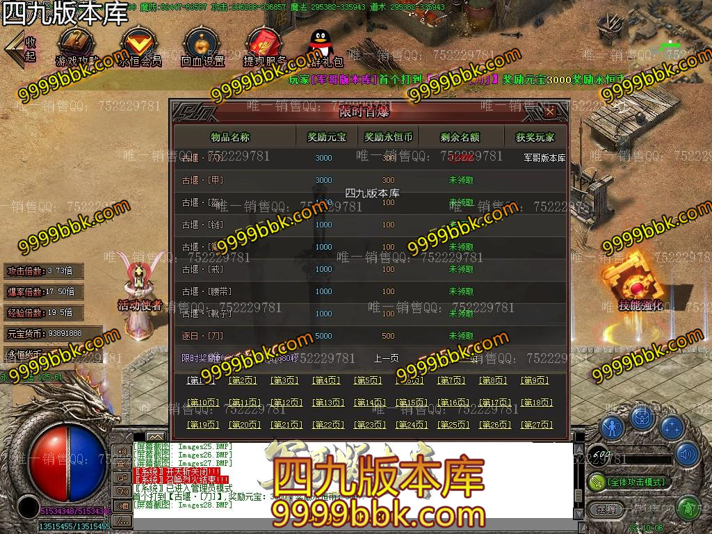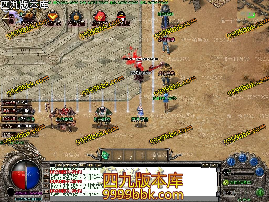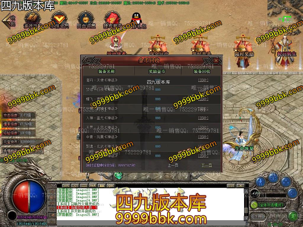 【充值比例】网银充值1∶1000永恒币,金币1∶10。本服不卖元宝。装备靠打。