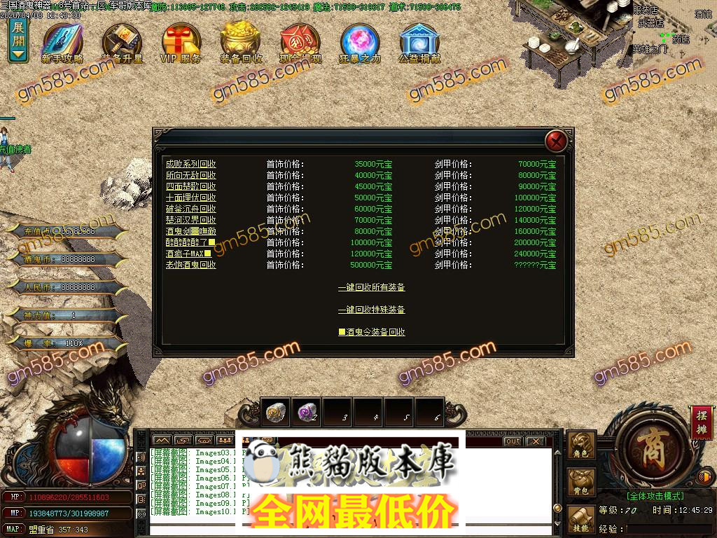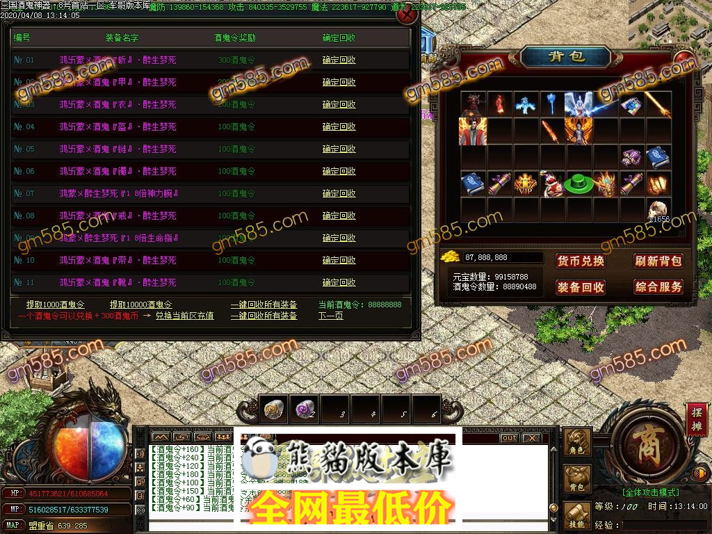 3. 散人不充钱也可以回收装备,回收币,回收酒鬼令,合成上三,小怪也有可能爆终极,只要你有时间.