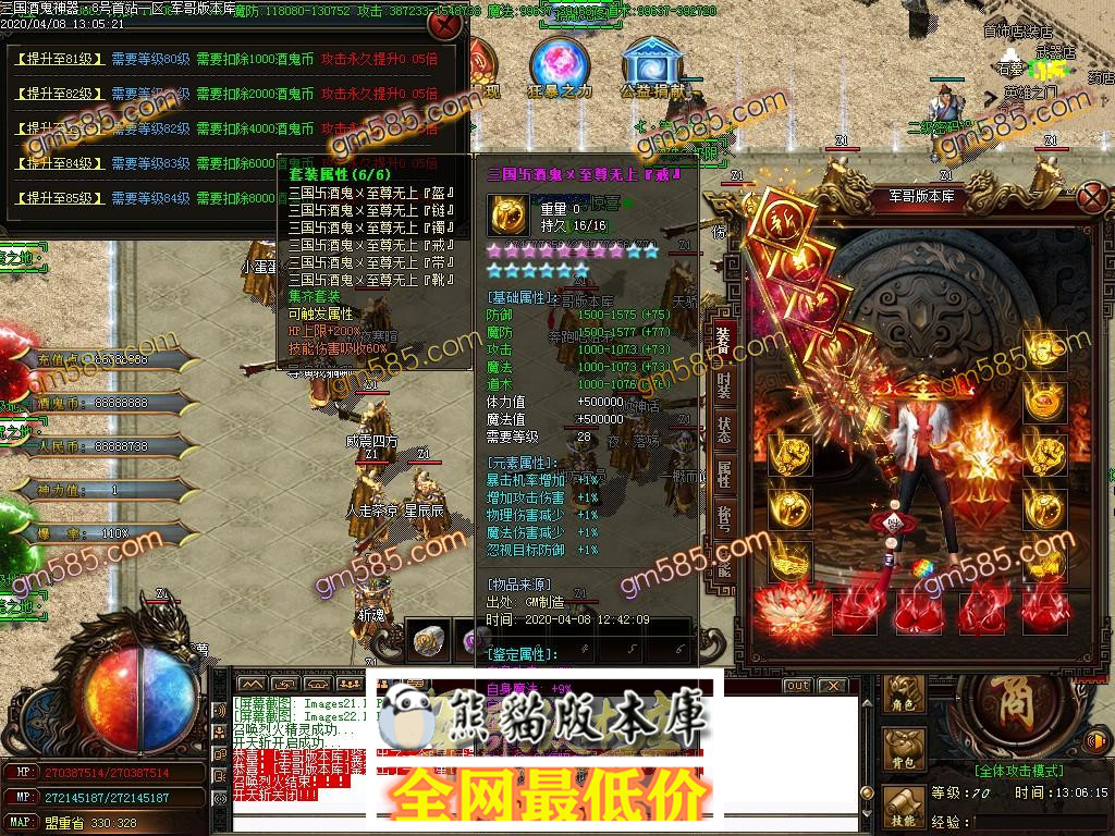 3. 本服除了上三,其他的装备全部打怪获得,无任何合成,所有玩家都看脸,决无任何坑爹隐藏消费.