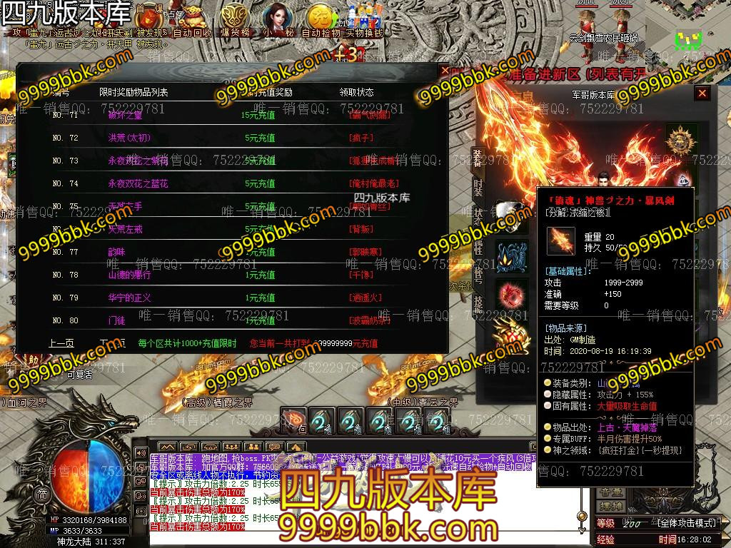 增加散人免费玩福利,低级专属装备可以兑换充直积分