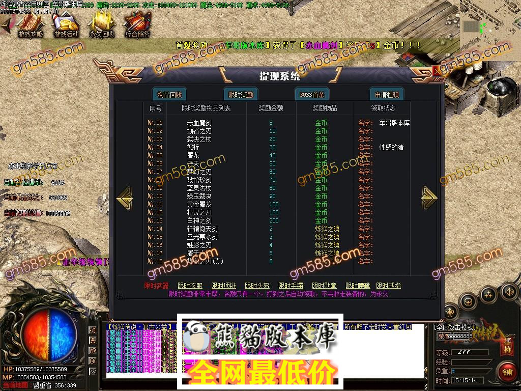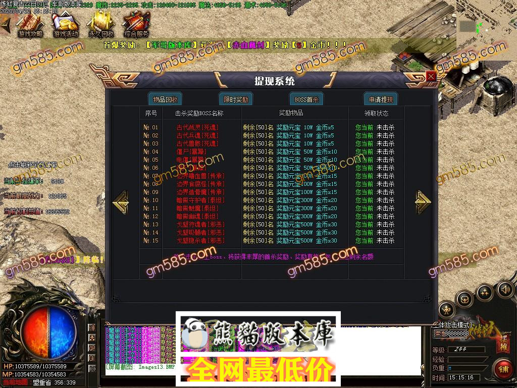 [GOM引擎] 16-803独家炼狱传说复古倍攻无限刀单职业传奇版本-带假人-自动拾取-光柱-捐献系统-炼狱迷城_