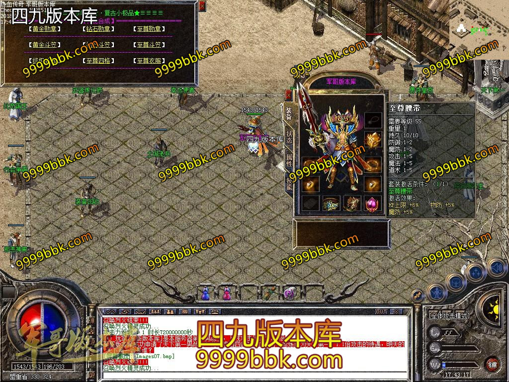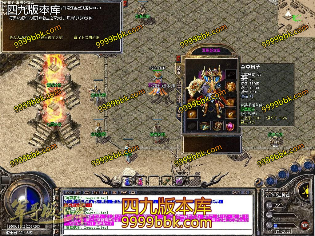 【特色介绍】:新增黄金武器,传奇神甲(袍),可在3.2万血怪的超级BOSS爆出。装备不变态,旨在突出高级别玩家装备外观!