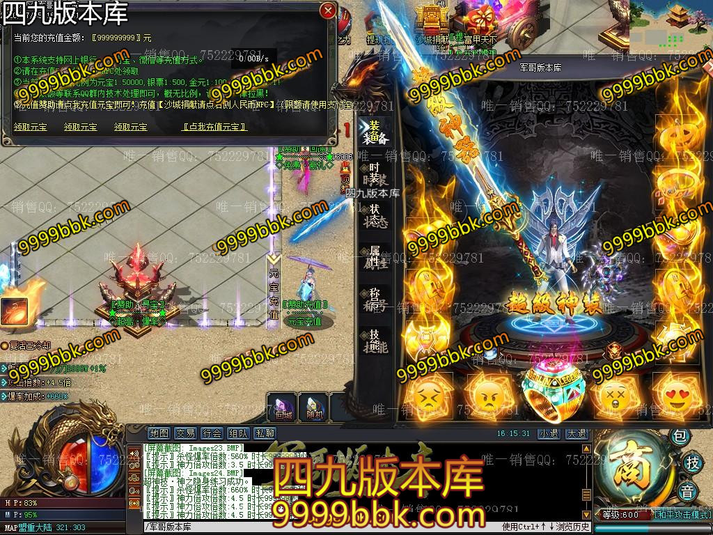 金币充值比例 1 :10   版本为正常开区端有问题联系QQ 616102345  处理