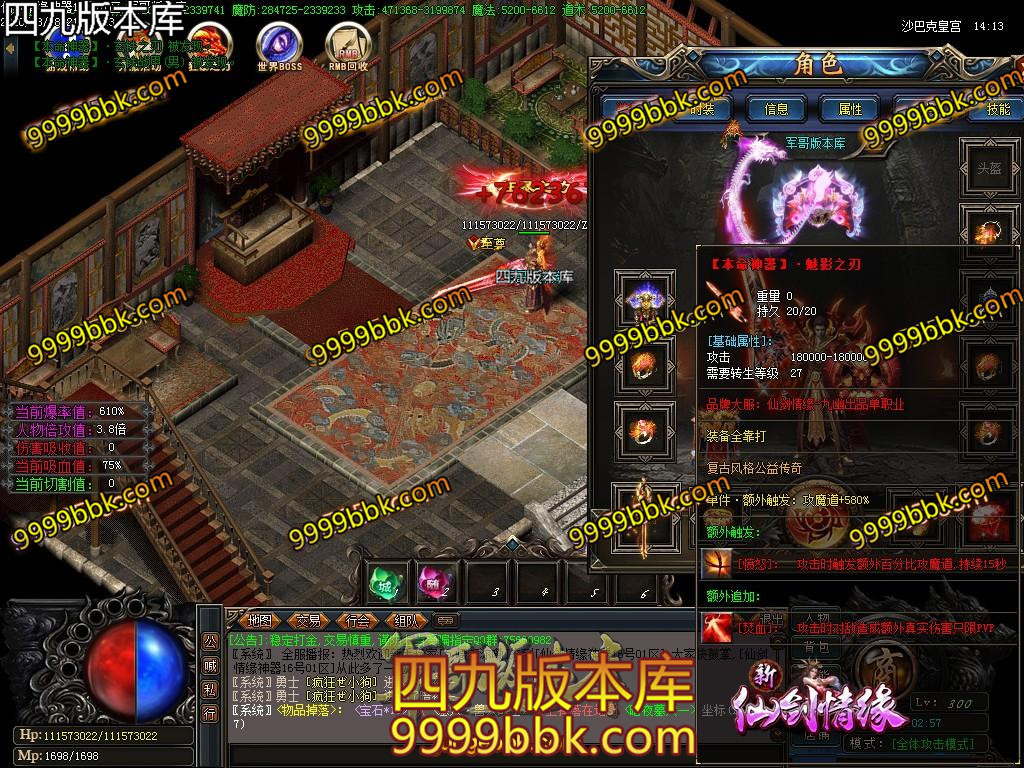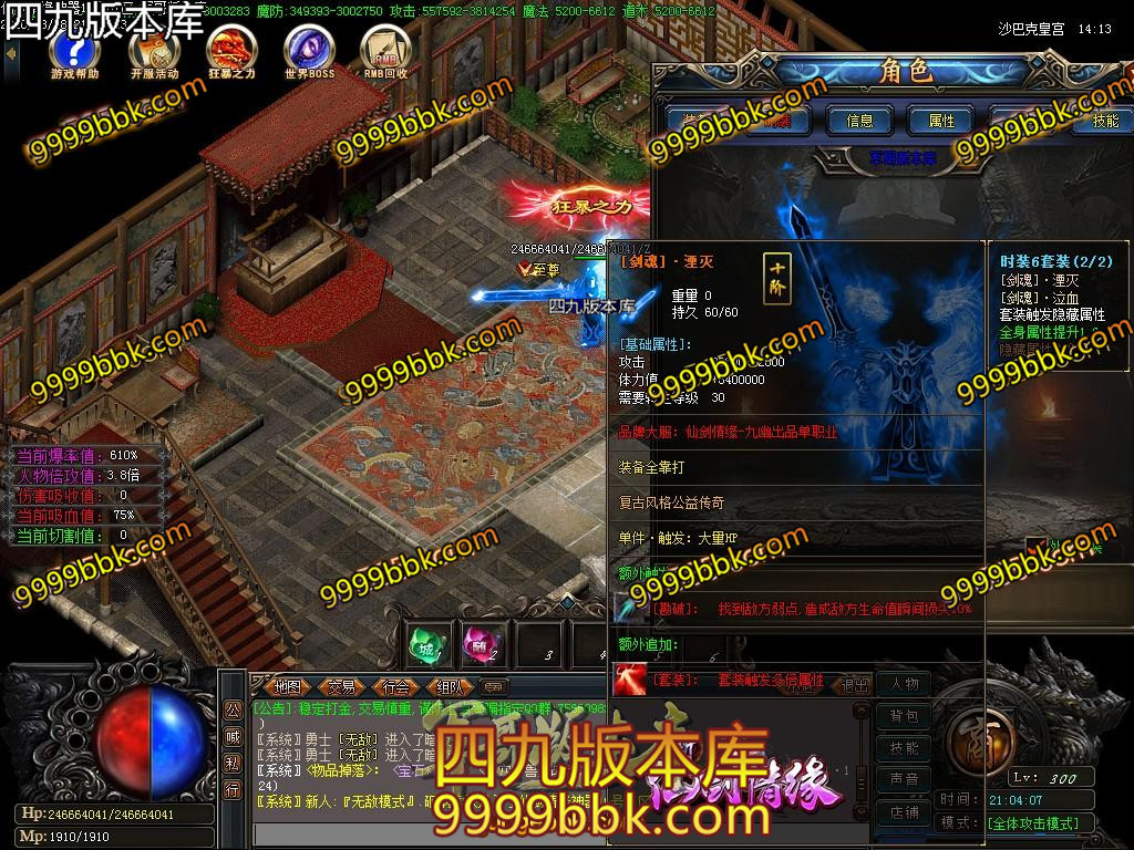 ⑨:本服套装属性很强大!必须要弄套装,套装属性翻倍及吸血属性!越级打怪的必须条件之一