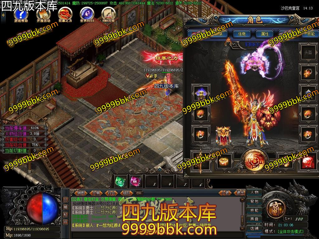 ①:本服领QQ群礼包可获得施毒术、逐日和开天斩等,真正做到不花钱上线就能撸死所有BOSS…