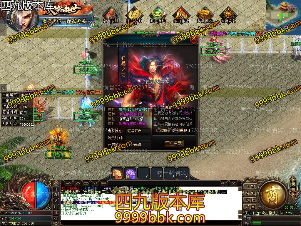 金币充值比例 1 :10   版本为正常开区端有问题联系QQ 616102345  处理