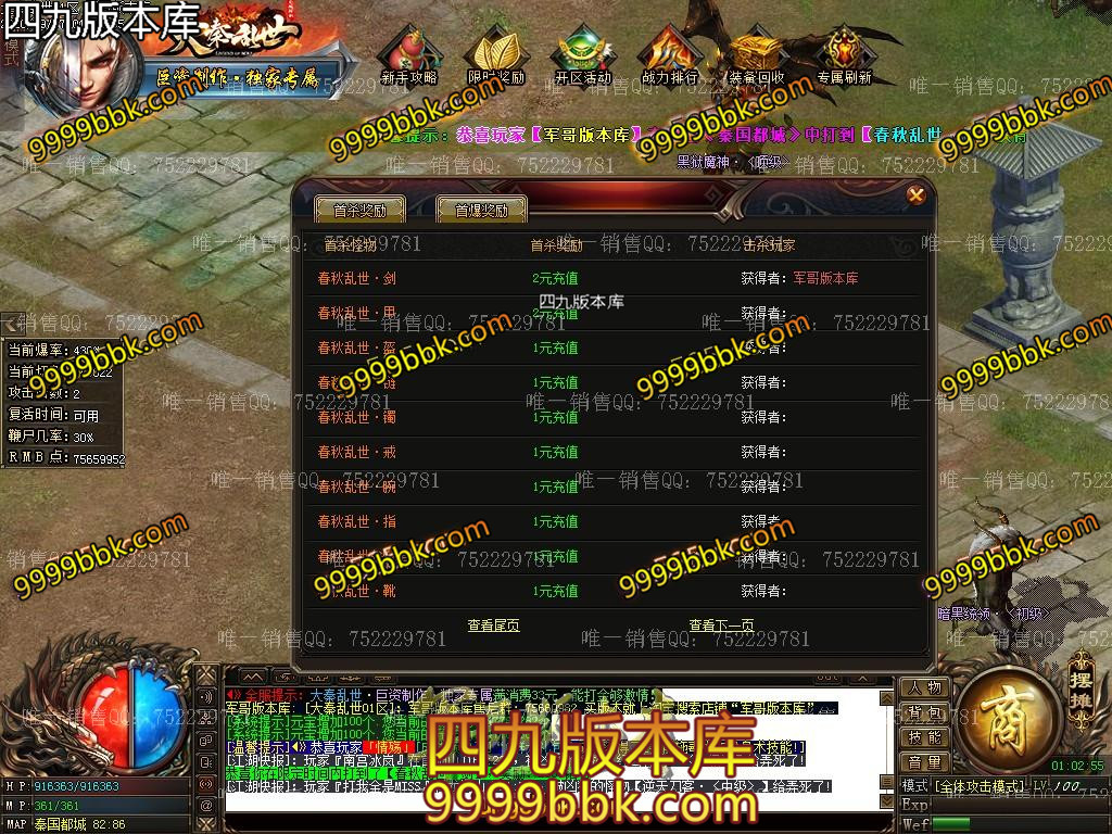 [GOM引擎] 17-527独家大秦乱世复古神器专属激情单职业服务端-带假人-盘古插件-光柱-自动回收-赞助地图