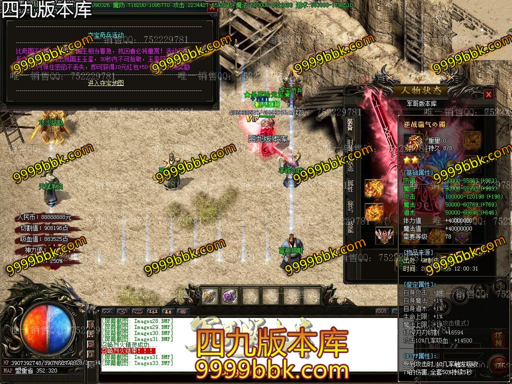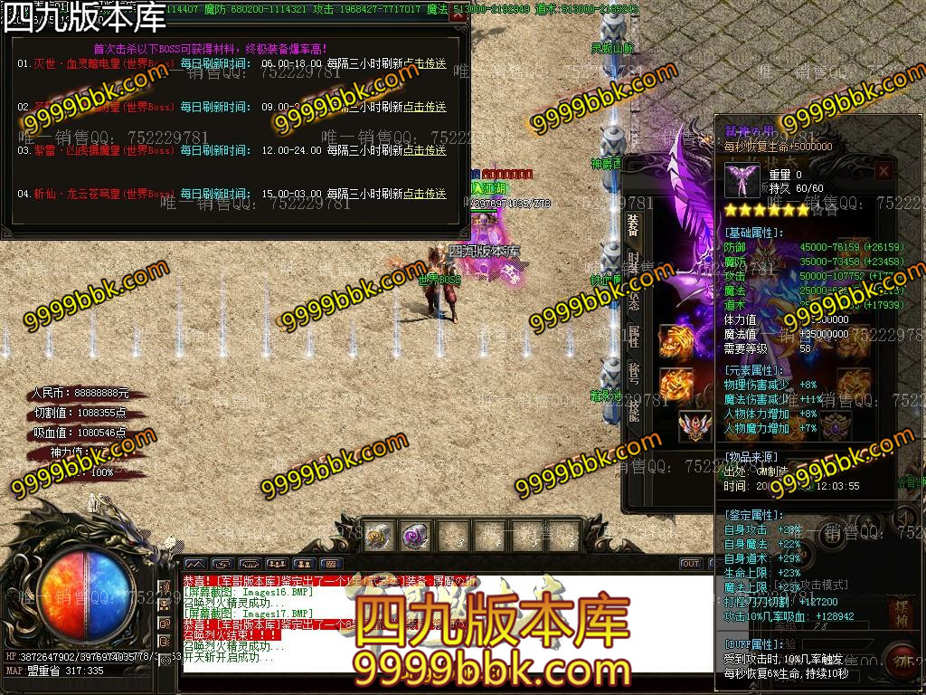 <本服地图超多,地图等级越高,爆率越高,地图里面刷新全BOSS模式.1000W血BOSS爆所有装备.